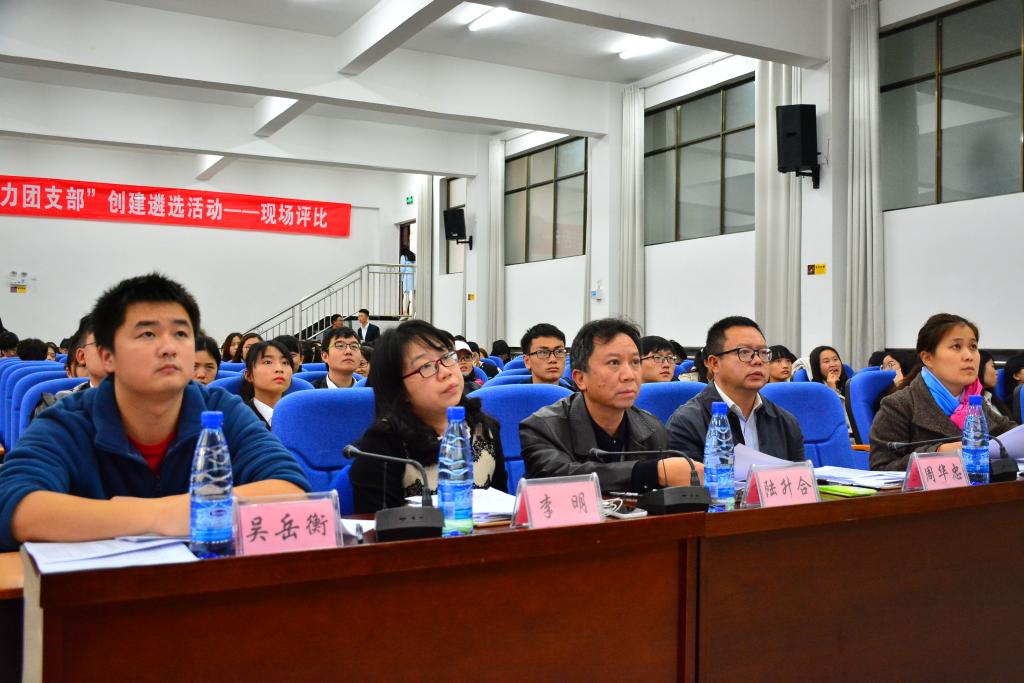 组织部部长陆升合、学生工作部部长周华忠、心理健康教育指导中心副主任李明、校团委办公室主任张宝娣、副主任吴岳衡担任本次遴选活动的评委老师,各学院参评团支部及学生代表参加现场遴选活动。