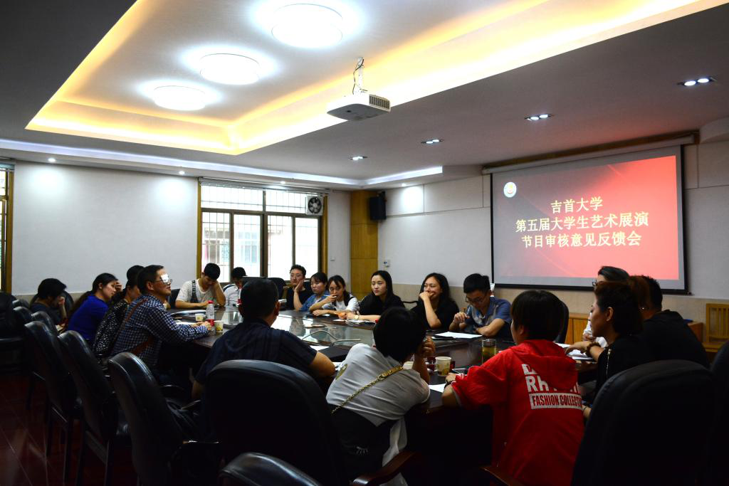 本次审核的六个作品将代表我校参加湖南省第五届大学生艺术展演活动。非专业组有女子群舞《数纱女》、话剧《凤凰花开的时候》、混声合唱《撒里啰》、《卡普它》;专业组有群舞《黑包袱》、打击乐《鸣·律》、混声合唱《阿妹玛汝玛》、《醉在云故乡》。以上作品从音乐编曲到作品编排均是原创,代表了我校艺术创作水平。