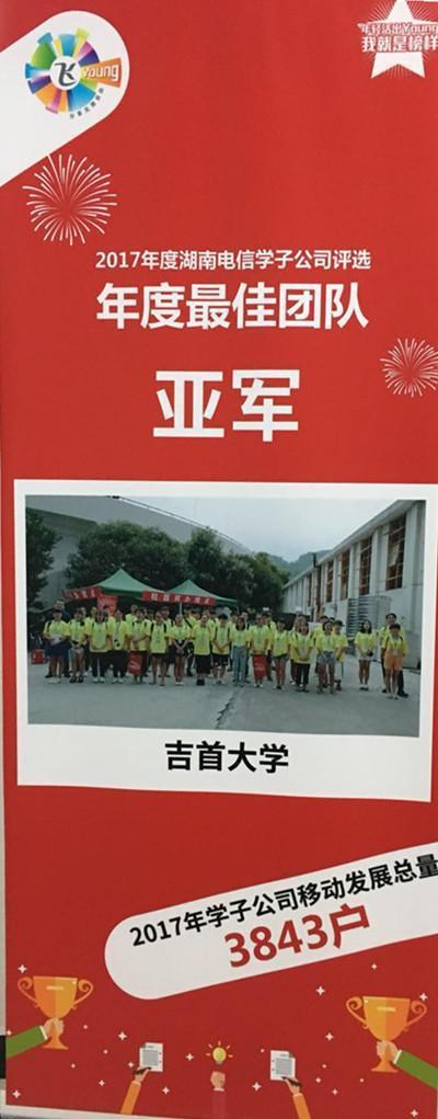 沈博峰等10名同学在2017年团中央—中国电信“飞young创业英雄汇”活动中表现突出,荣获全国“大学生双创先锋”荣誉称号。其中艾瑞娜同学在学子公司的销售业绩大赛中获得湖南省前10强。WilliamHill体育学子公司团队在湖南省高校2017年度电信学子公司评选中获得“亚军”,这充分展示了学校学子勇于创新实践的风采。这次活动丰富了大学生的实践活动,增强了学生的创新精神、创业意识和创新创业能力,推动了创新创业实践活动的开展,使学生的综合能力得到了显著提升。
