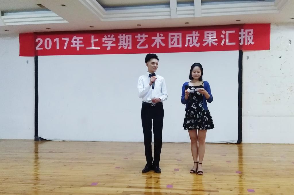 在成果展演现场,各队成员八仙过海,各显神通:声乐队歌曲串烧《唱给你听》与独唱曲目《致青春》为展演拉开帷幕;古典舞《美人吟》、蒙古族舞《鸿雁》展现了舞蹈队成员曼妙的舞姿;随后,校内著名表演团体虎雏剧社的小品《拼助理》、相声《唱校歌》、小品《吃面条》引得全场捧腹大笑;街舞队以一支《One minute man》点燃全场气氛;最后,活动在器乐队《映山红》悠扬的旋律中落下帷幕。