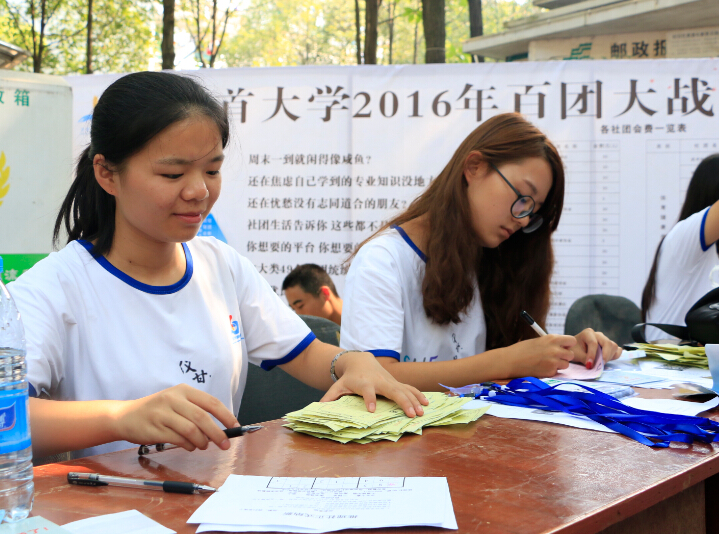 图为社联工作人员进行社团招新工作 朱晓露摄