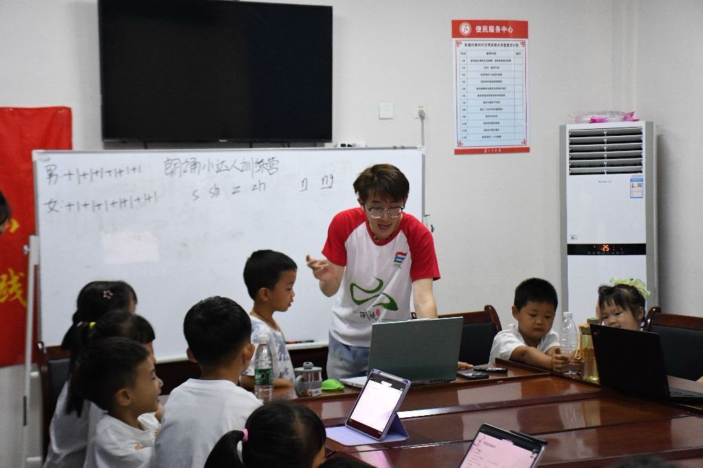 (通讯员 樊天逸 尹堂宇 张安琪)为提升乡村儿童语言表达能力与审美素养,以文化浸润厚植乡村教育振兴的根基,让朗诵成为撬动乡土少年精神成长的支点。7月8日,WilliamHill体育数学与统计学院“数时代”社会实践服务团在双塘镇双塘村“三下乡”活动中,创新开设“朗诵小达人训练营”特色课程。支教老师樊天逸以趣味化、沉浸式教学,带领孩子们探索声音的魔法,在经典诗文的韵律中筑牢文化自信。