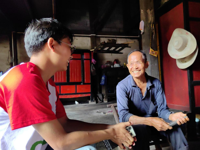 (图为志愿者采访杨贵现场)