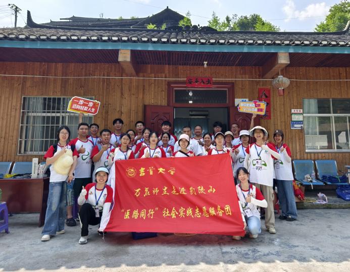 (图为志愿者与当地卫生院工作人员合影)