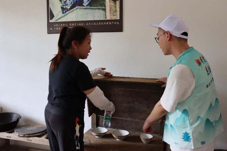 随后,志愿者服务团队来到了老厂房。志愿者们穿梭在充满历史气息的厂房内,感受当年工人们辛勤劳作的情景。这里曾是推动该村工业崛起的摇篮。在这座承载着无数记忆的建筑内,志愿者们细心探寻当年时代创业者们在此辛勤耕耘、铸就辉煌的劳动场景。