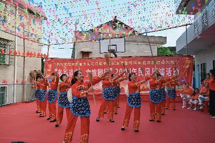 (图为道童村玫瑰舞队表演《双脚踏上幸福路》)