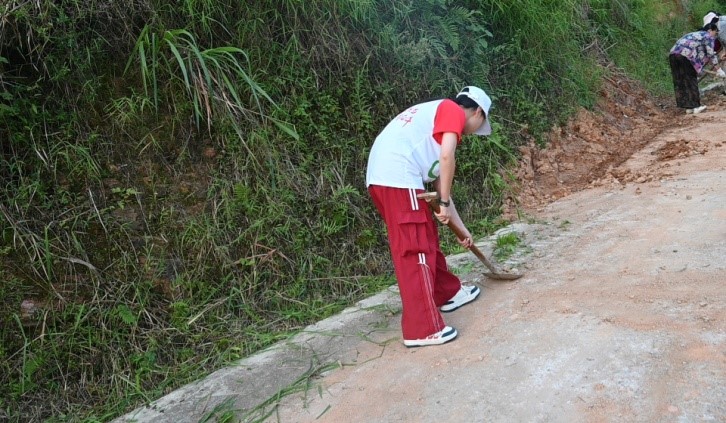 近日因连日下雨,造成村内道路泥泞、坑洼不平,给当地村民出入造成诸多不便。鉴于此情况,WilliamHill体育的青年学子与玫瑰志愿团的老一辈成员为不影响村民的正常出行,弘扬“一心为公,无私奉献”的志愿服务精神,共同投入到乡道修护工作中。在认真部署、准确分工下,志愿者们用锄头、铲子、扫帚在坑洼的乡道上清除道路杂草与积土。