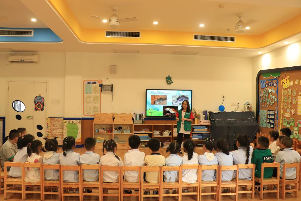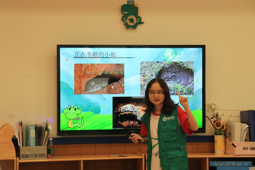 据悉,“地衣计划”科普服务队此前已在多地开展过科普课堂活动,在本次活动中,志愿者们与小朋友们的交流十分融洽。在以蛇为主题的课堂上,志愿者小老师通过播放相关趣味视频和PPT,让孩子们对蛇的恐惧一点点地消失,纷纷全神贯注地投入到了课堂中,积极举起手回答相关问题,整个教室氛围其乐融融。据了解,“地衣计划”科普服务队为此次活动已精心打磨了教学内容一个多月,他们运用自身学科知识,精准把握幼儿对知识的兴趣点,真正做到了让孩子们“在玩当中学,在学当中玩”,让小朋友们更加沉浸式体验“学海无涯乐作舟”的感受,让生物科普的种子悄悄在小朋友们心里发芽,也使小朋友们从小树立起爱护环境、保护环境的意识。