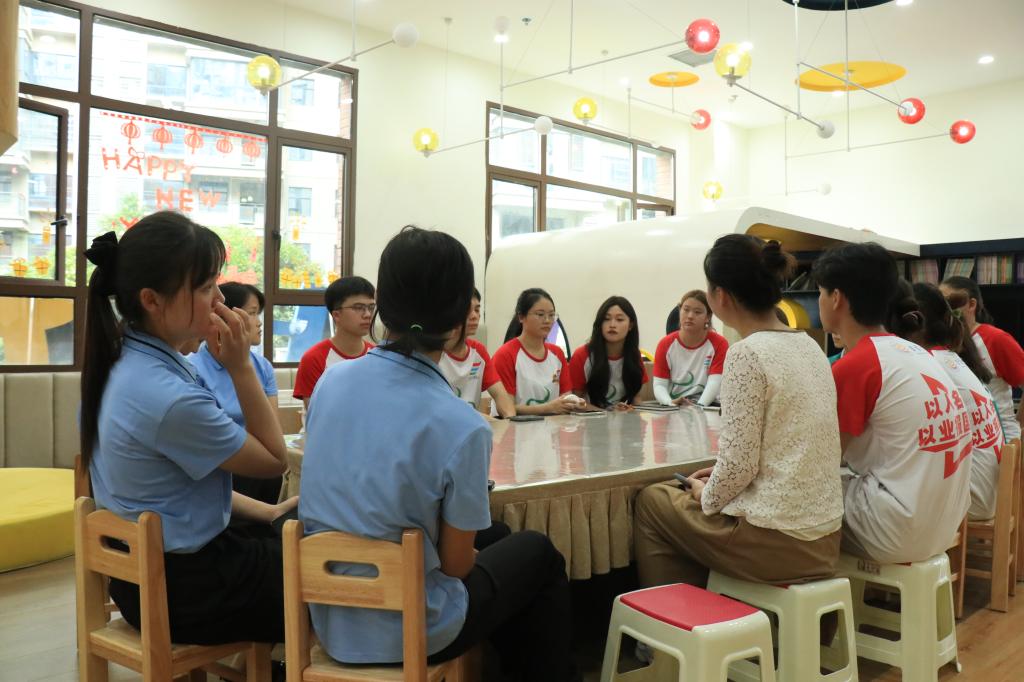 科普课堂结束后,在刘亚雯和园长吴艳琼的带领下,“地衣计划”科普课堂组成员与老师们共同探讨交流了本次活动。老师们首先肯定课堂讲解人在调动并控制课堂氛围方面所做的努力,同时也赞扬了讲解人能把晦涩难懂的知识变得生动有趣易于接受,同时也提出志愿者们还需继续了解孩子们学习效率高低变化方面的知识。相信通过此次座谈会,“地衣计划”科普服务团的成员们能够收获到更多,在未来的科普活动中做到更好。