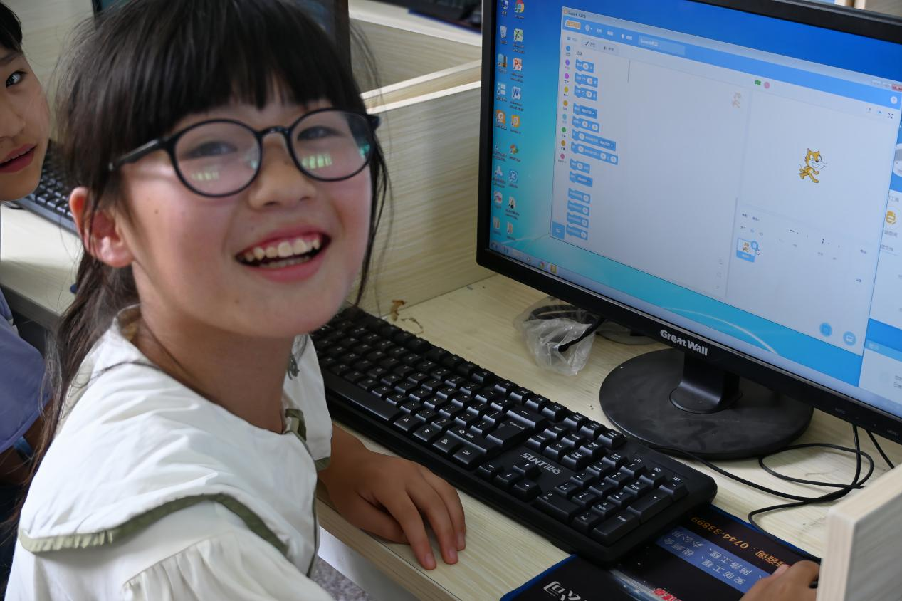 团队支教组志愿者在预设少儿编程特色课程之时曾谈及到,“根据我与苗市中学的尹建忠校长的交流了解到,虽然学校里配备有设备齐全的电脑阅览室,但是较多孩子此前并没有系统地上过信息技术课。我想让乡村的孩子们也能接触信息化技术的课程资源,使其有机会看到更大的世界。”