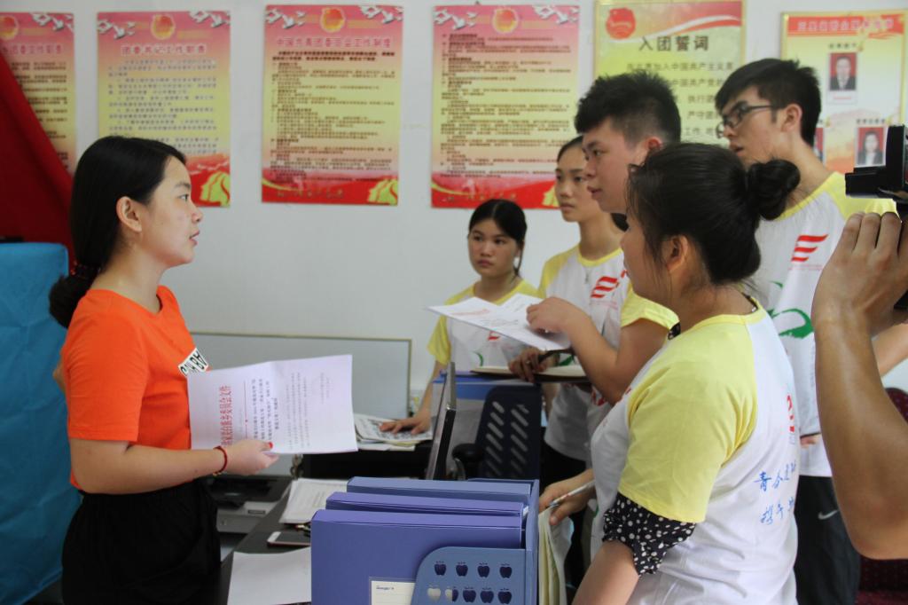 (图为队员们向当地政府部门有关同志进行咨询 邓丽倩摄)
