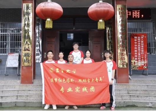 (实践团成员在永顺县塔卧镇委员会前合影)