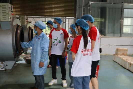 走进莓茶加工间,在当地工作人员的讲解带领下,实践团成员深入了解并学习了莓茶的摊晾、萎凋、杀青、揉捻、干燥、筛分和包装等七道制茶工序和流程,体验了茶叶从鲜叶到成品莓茶加工高效、清洁的一体化生产过程。多年来,莓茶加工厂不仅帮助了村民就业、增加了农产品价值、传承了先进技术与管理经验,还促进了村经济多元化发展,提升了乡村旅游吸引力,为乡村经济注入新活力。