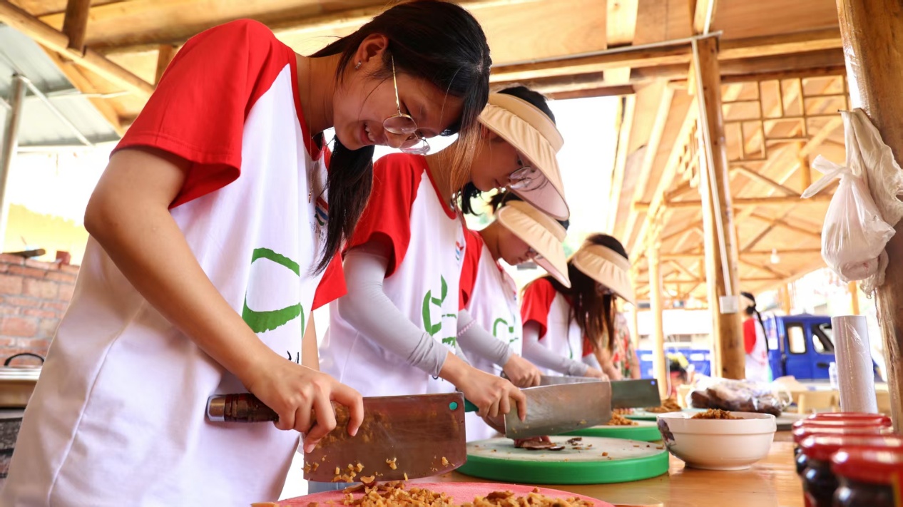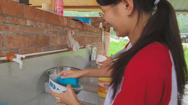 时间紧,任务重。后勤组立刻行动:组长调配人手,切菜的刀更快了,掌勺的火更稳了。“一定让大家吃上热乎饭!”这份信念支撑着每个人。看着队员们吃得香甜,后勤组同学们疲惫的脸上露出了笑容——所有的辛劳,都在这一刻化作了最暖心的回报,这是扎根乡土、服务团队最朴实的幸福。