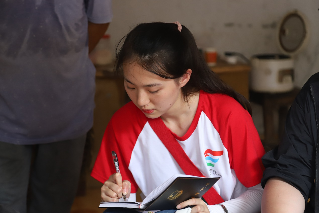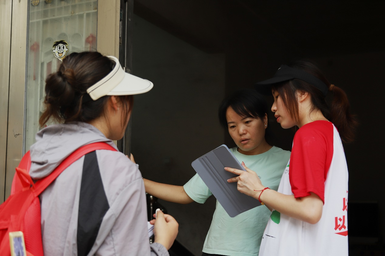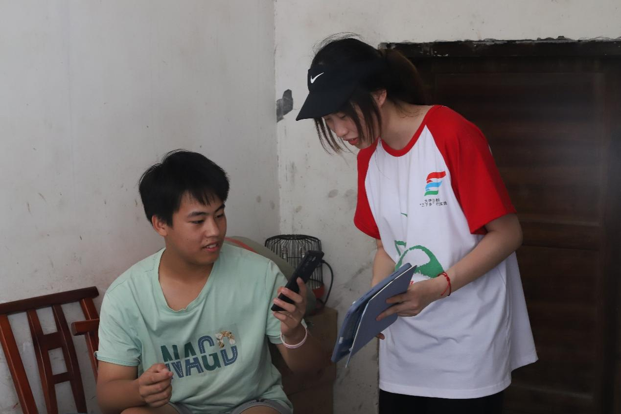 图为调研人员开展山区乡村留守儿童智能手机成瘾状况调研