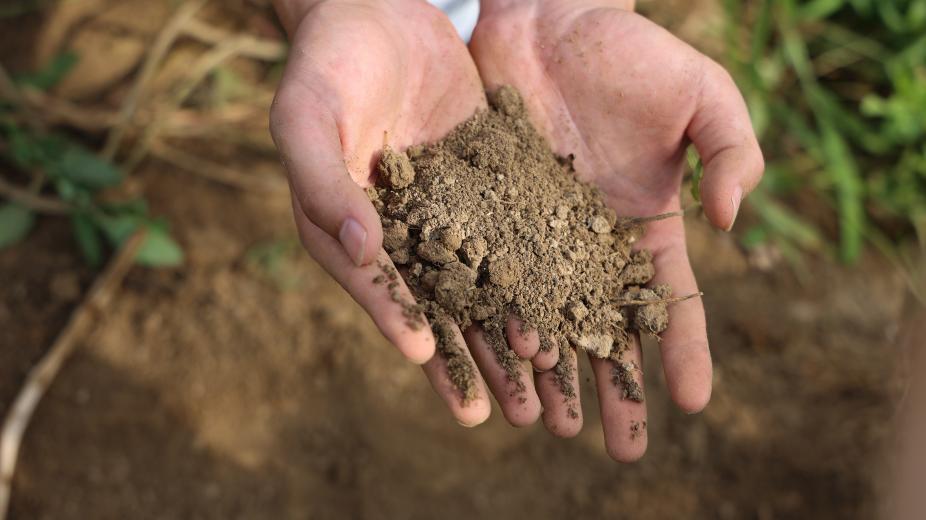 图为队员双手捧土