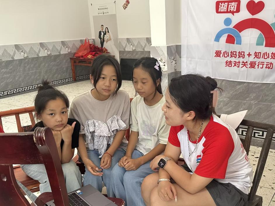 活动中,实践队的教师以“爱心妈妈”角色为儿童家长提供一对一指导,聚焦情绪引导、沟通模式等家庭教育痛点,建议家长减少孩子学业压力,通过体育锻炼、劳动实践等方式促进孩子身心平衡发展。实践队的学生则化身为“知心姐姐”,以趣味互动与专业讲解并行的方式,为孩子们打造心理健康与安全教育课堂,帮助孩子们掌握心理调适技巧,重点开展了防性侵等专题教育,为孩子们安全健康成长护航。师生们还特别关注留守儿童与困境儿童,通过趣味游戏、一对一谈心等,打开孩子们的心扉,并提供学习与成长建议。