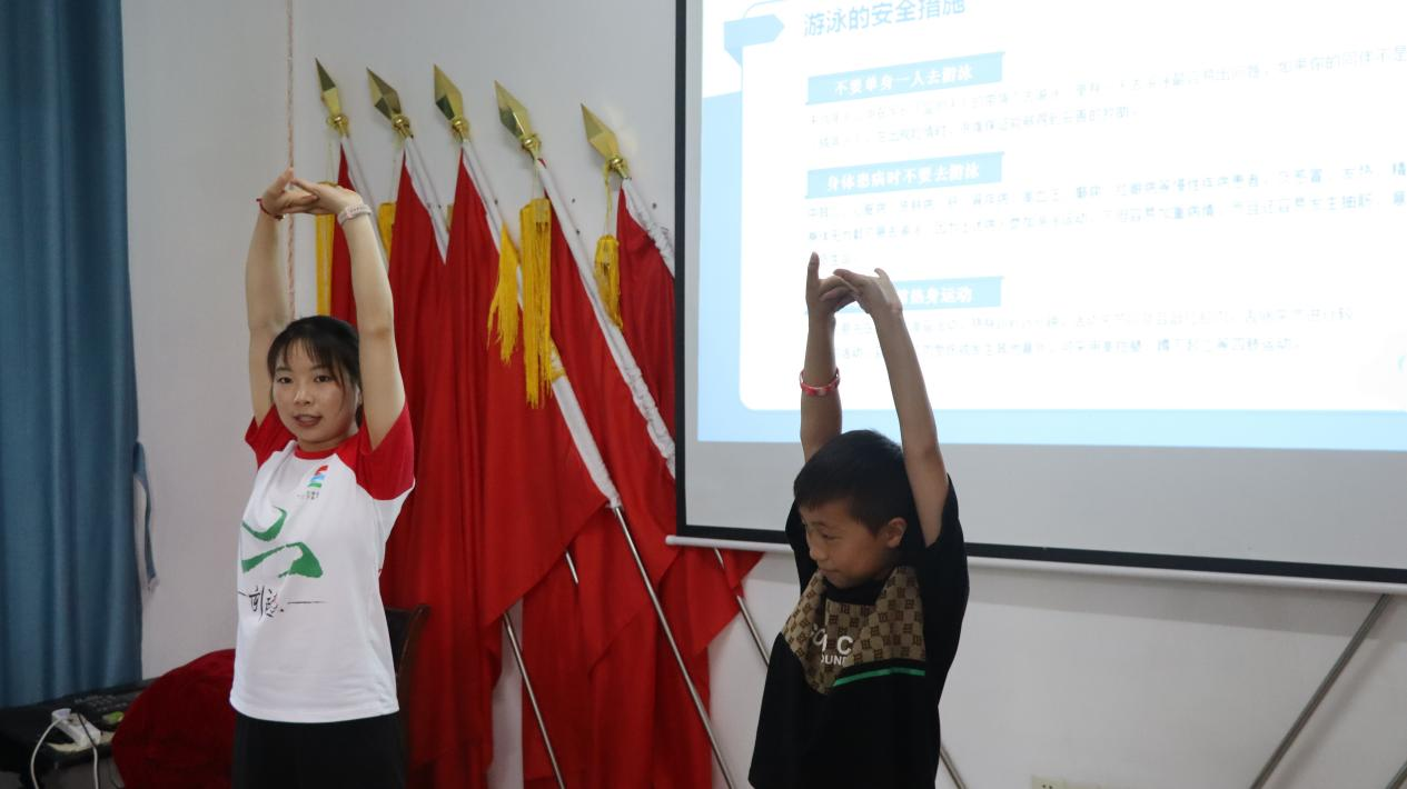 (通讯员 杨慧君 易欣渝 蒋玺)根据教育部基础教育司发布预防学生溺水工作预警,为进一步加强学生防溺水安全意识,切实保证学生暑期生命安全,7月5日,“体育文化人”社会实践团的志愿者们在通达林村暑期社会实践中,将防溺水安全宣传融入课堂教学中,开设了“暑假防溺水安全知识主题班会”,旨在提醒学生在夏季游泳季节来临之际,增强防溺水安全意识,掌握自救和互救的技巧,增强防范溺水的能力。