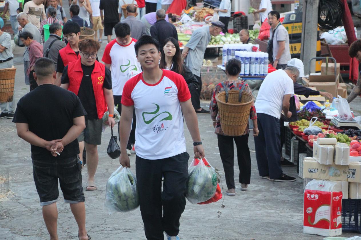 (图为志愿者市集采购食材 蔡颖 摄)
