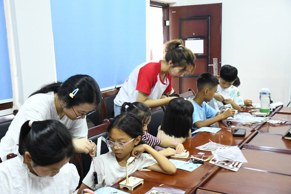 “声音为什么能让灯亮起来?”面对孩子们的好奇,曾水玲教授以一台自制声控灯为教具,通过实物拆解将抽象原理转化为直观认知。她轻喊“开灯”触发发灯光,瞬间点燃了孩子们的探索热情。在实践团成员的分组指导下,孩子们化身“小小工程师”,亲手组装台灯组件、连接电路、调试传感器。当第一盏声控灯随着掌声亮起时,教室里爆发出阵阵欢呼:“我的灯听懂我说话了!”