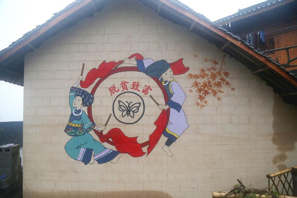 图绘美丽乡村,将“精准扶贫”政策解读融入艺术,不仅美化了村容村貌,丰富了群众的精神文化生活,又鼓舞了群众加快脱贫步伐的勇气和信心,营造了脱贫攻坚的良好氛围,成为十八洞村人民建设美丽乡村的一道靓丽风景。