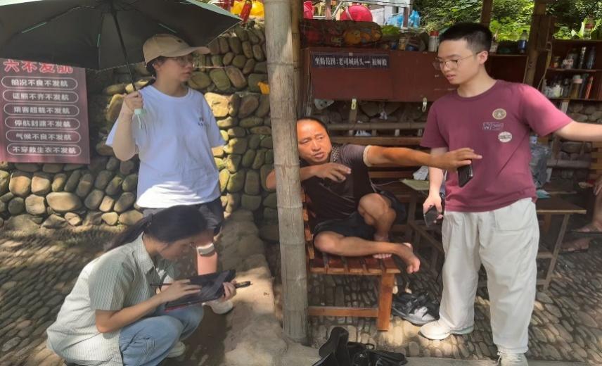 调研中,队员们奔走于接官渡、喻家堡等重点区域,与当地村民和非遗传承人展开交流,采集到大量关于土司制度、节俗礼仪等“口述记忆”。一位七旬老人讲述钦差过渡场景,非遗传承人还原摆手舞仪式,废弃书院前的讲解则唤起村庄教育记忆。团队用笔记、录音、影像还原历史片段,并在地图中加入空间坐标、图文注解,用青年视角勾勒出老司城的文化肌理。“我们不只是画地图,而是在讲述村庄的故事。”一位成员表示。