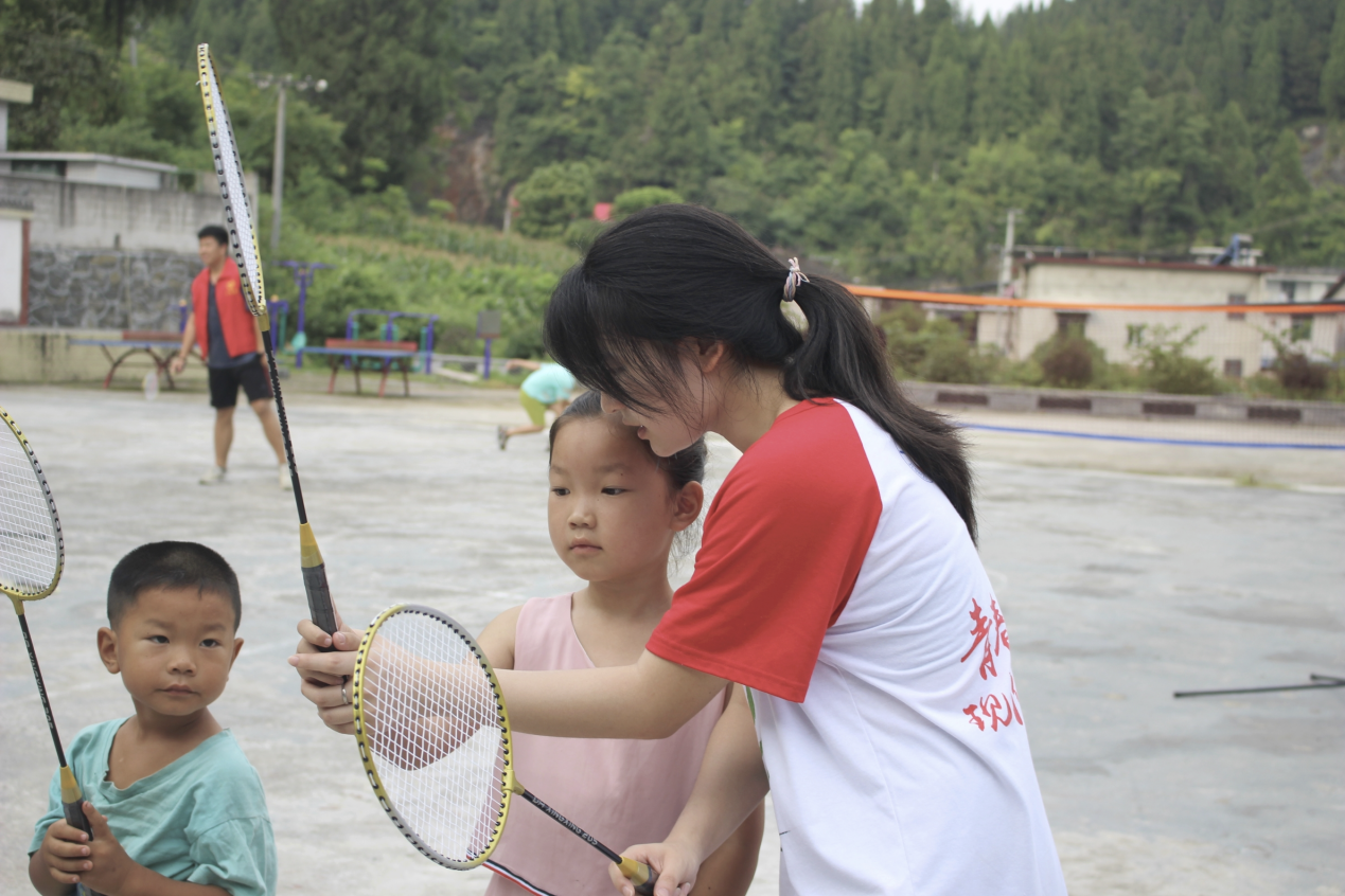 (图为志愿者手把手指导孩子们练习羽毛球 刘俊杰 摄)