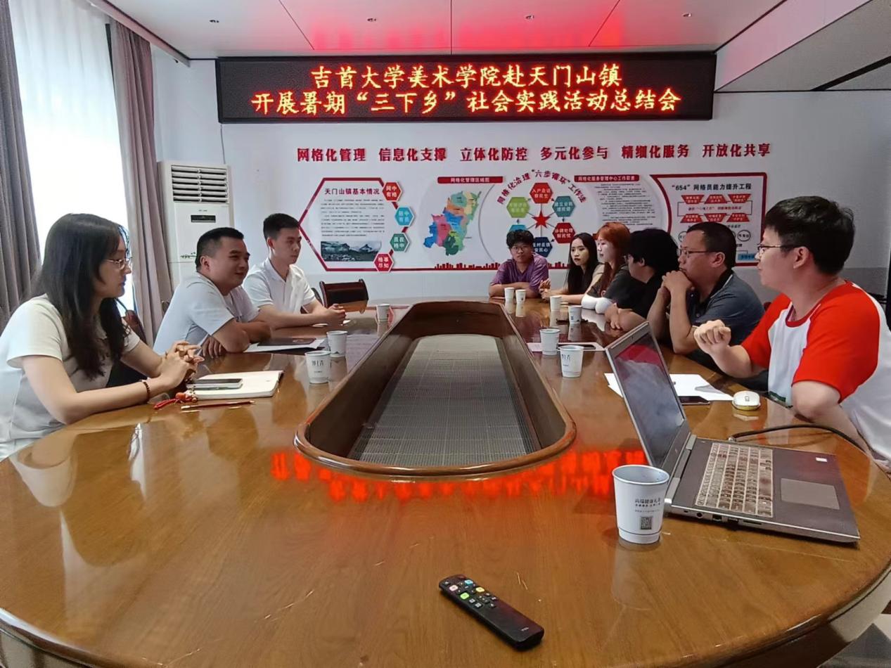 7月8日下午,天门山镇召开了WilliamHill体育美术学院暑期“三下乡”社会实践活动座谈会,天门山镇党委副书记(政法)、武装部长廖权武和天门山镇党委委员、副镇长杨起首先对三下乡团队的到来表示了热烈的欢迎,高度赞扬了团队成员们积极响应国家号召,深入基层、服务农村的奉献精神。同时,两位镇领导从多个方面向团队成员介绍了天门山镇的村情民况、特色产业以及当地的发展需求。通过座谈会,实践团制定了支教工作、墙绘绘制、产业发展设计、宣传推广这4项具体实践内容。