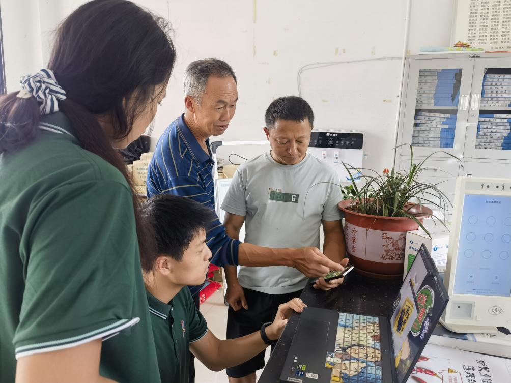 图为志愿者与当地村民探讨