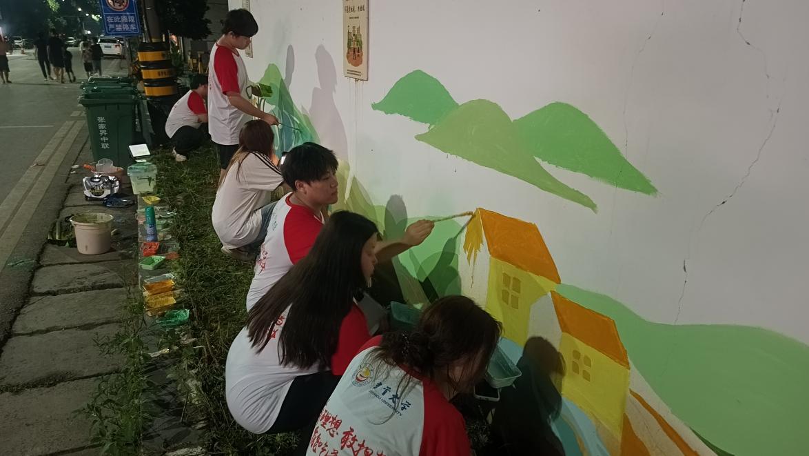 图为成员绘制墙绘