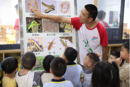 志愿者为小朋友们介绍蛇的形态