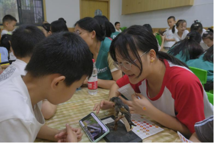 志愿者为小朋友耐心讲解标本