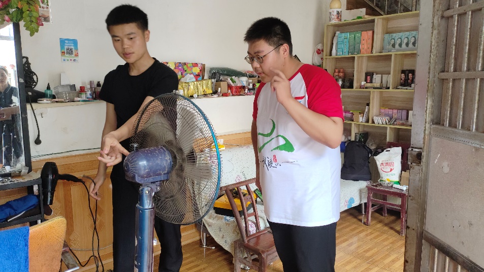 志愿者们帮老人修理风扇