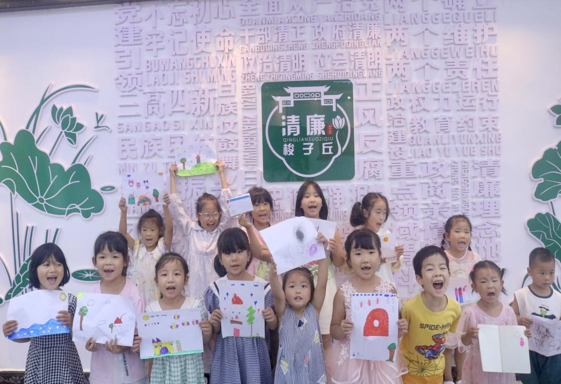 孩子们展示绘画作品