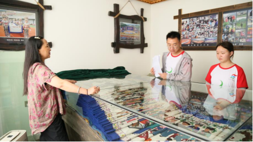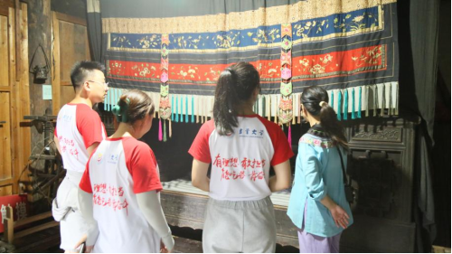 在向秀平的指引下,实践团成员走进凤凰山江苗族博物馆,深入了解苗族历史与苗绣文化。