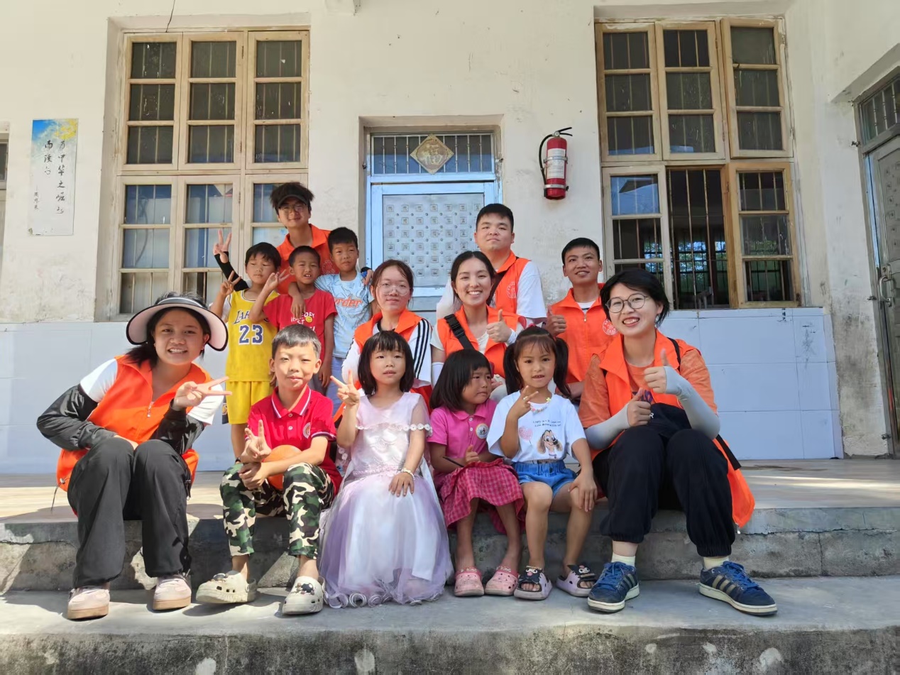 (图为实践团和孩子们合影)