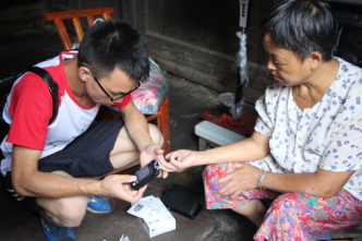 | 图为志愿者为石凤仙婆婆测血糖 许梦霞摄 |