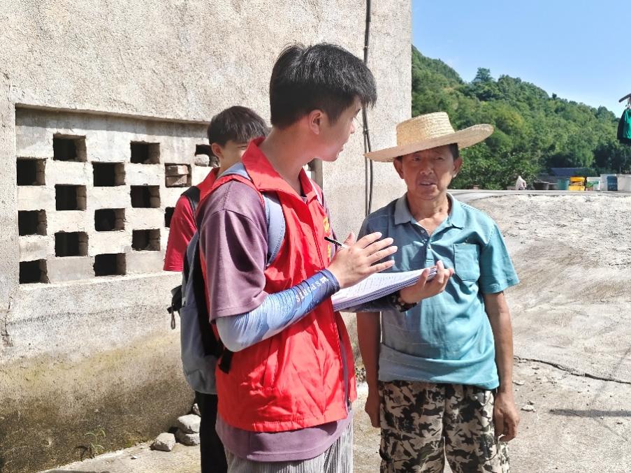 (图为实践团成员在杆子坪村走访调查 张伦瑞 摄)