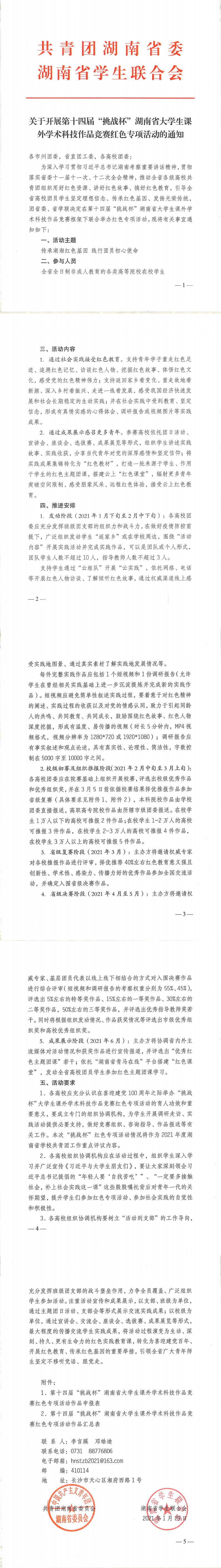 团省委 | 关于开展第十四届“挑战杯”湖南省大学生课外学术科技作品竞赛红色专项活动的通知