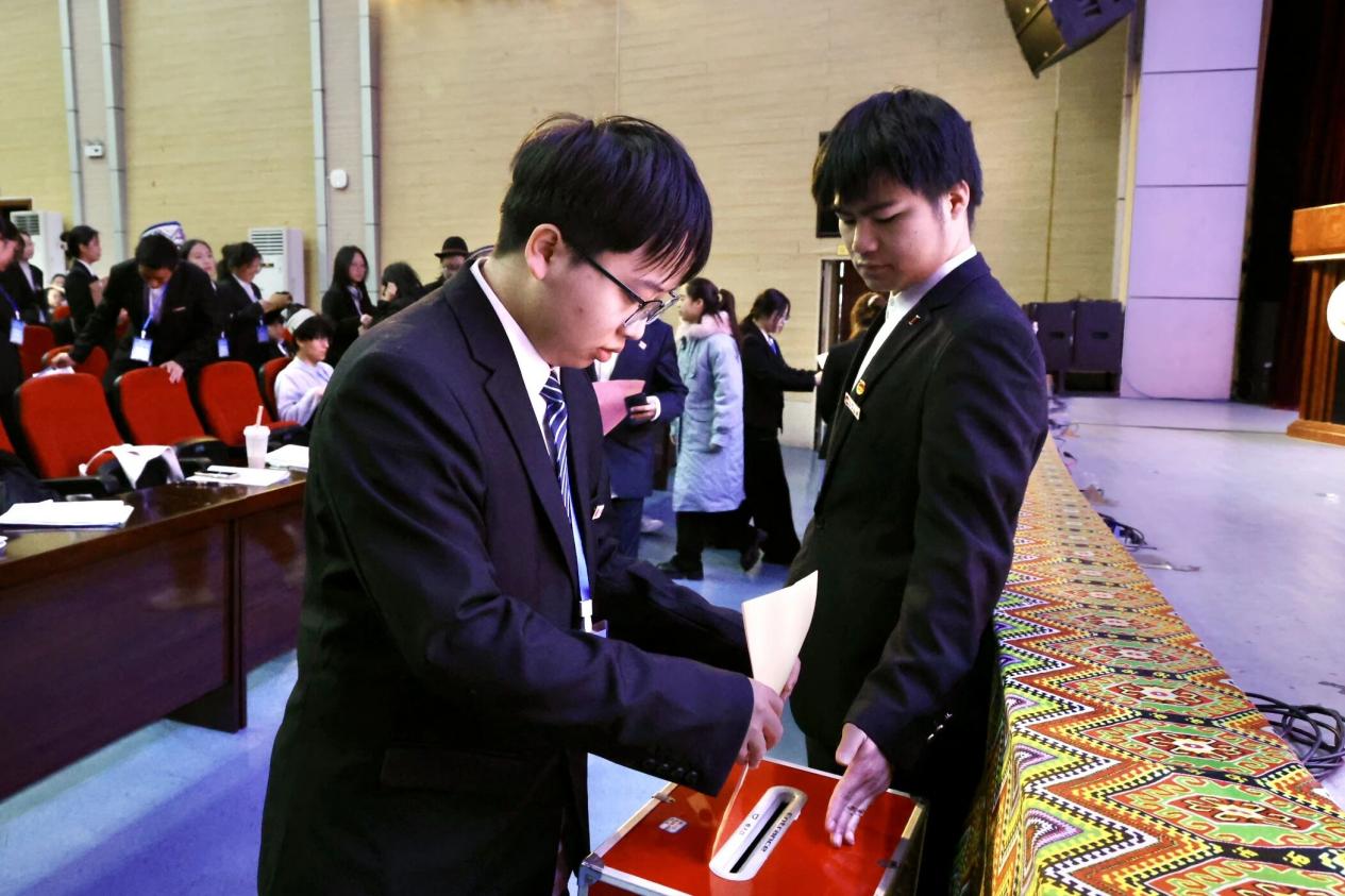 在随后举行的第二次全体会议上,代表们以高度的责任感,表决通过了常任代表会议代表及新一届主席团成员候选人名单,并郑重投下选票,选举产生了新一届学生代表大会常任代表会议代表和学生会主席团成员。