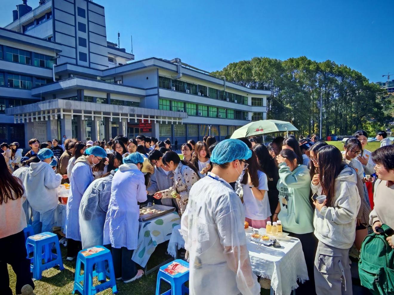在尾声的茶特色食品品鉴环节,化学化工学院师生精心研发的产品亮相:有牛肉干、莓茶饼、茶含片等零食,有饼干、蛋糕等茶点;有冰淇淋、猕猴桃汁等饮品;还有莓茶酒、茶醋等发酵产品。