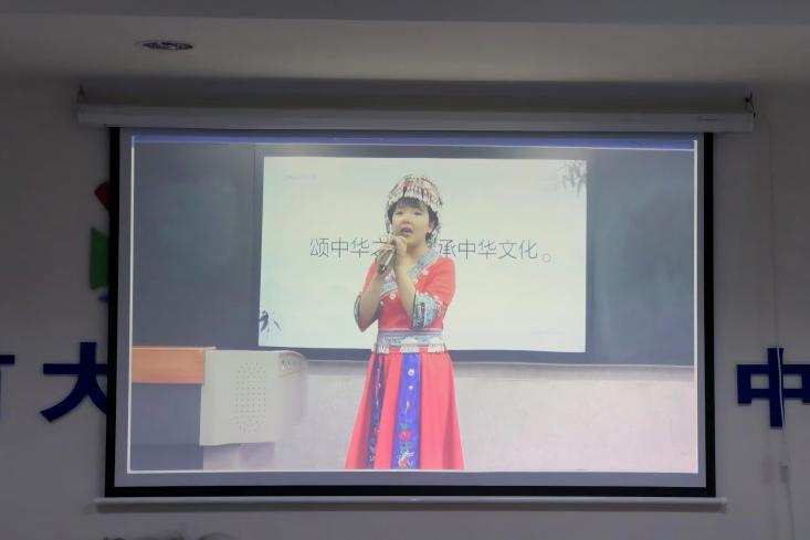 图为现场播放张家界校区参赛选手提前录制的视频 贺紫凤摄