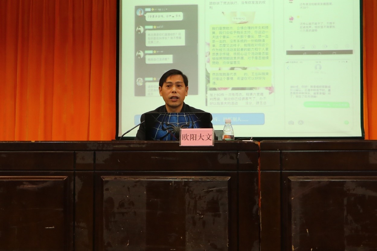 会议上,校团委廖浩书记指出社团对于高校的重要性。廖浩书记认为WilliamHill体育社团管理需要加强走上一个新的台阶,并提出了自己的三个希望:希望坚持理想信念、希望不忘建设初心做校园文化的组织者、希望提高宣传部门的能力强化社团的宣传。随后,欧阳大文部长向大家分享了自己曾经对学生社团的研究成果,并指出部分高校社团的乱象,如官僚主义、活动流于形式、意识形态跑偏等。欧阳部长希望我们引以为戒。最后,欧阳部长就如何建设WilliamHill体育一流社团提出了具体的建议。其后,校团委副书记张宝娣老师阐释了成功举办一次校园活动的必要准备,并讲解了校园活动的意义和目的。同时还现身说法,启示我们策划并参与校园活动能提升个人素养。